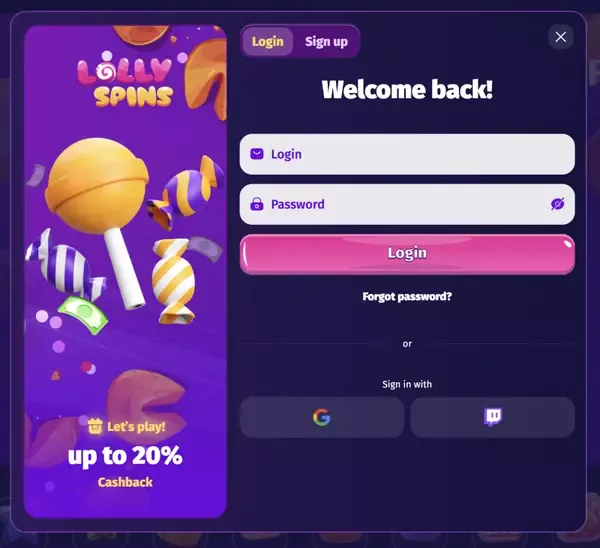 Το κουμπί είσοδος LollySpins είναι διαθέσιμο στο επάνω μέρος του site σε desktop και στο mobile menu σε μικρότερες οθόνες. Αν ξεχάσετε τον κωδικό σας, χρησιμοποιήστε την επιλογή επαναφοράς για να λάβετε link μέσω email ή επικοινωνήστε με το live chat για καθοδήγηση. Όταν επιστρέψετε, επιβεβαιώστε ότι ο browser σας δείχνει το εικονίδιο ασφαλούς σύνδεσης πριν εισάγετε στοιχεία.